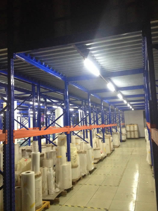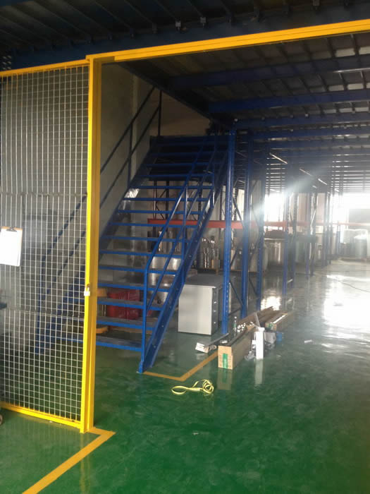 一楼可能通过堆高机作业,一般摆放可以上货架的物品及存取频率比较高的货物,这样在阁楼平台中,将主要作业集中在一楼,而二楼的货物,可以通过我们设置的楼梯通过人工存取,当然,有时我们也会根据客户要求,设计上下货口或升降平台存取。