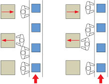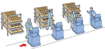 作业现场上料 组装工位的零件供应,符合先入先出精益制造概念 | |