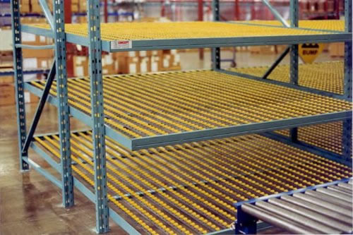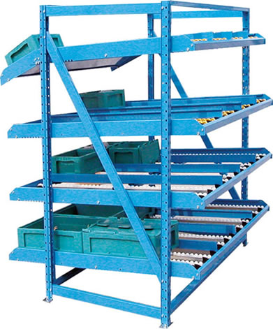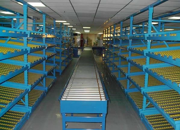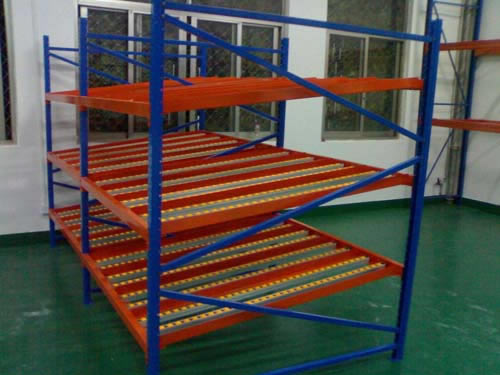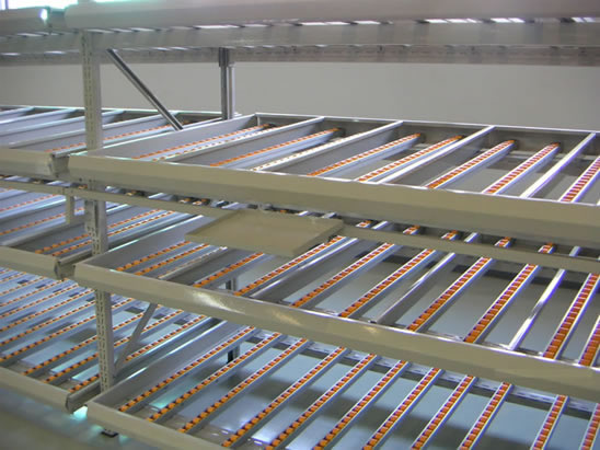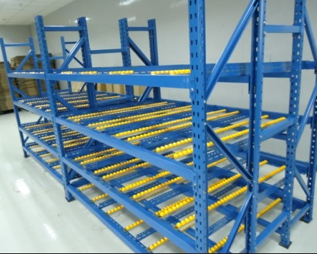 1、滚轮式货架又叫流利式货架,此类型货架通常由中型横梁式货架演变而成; 2、货架每层前后横梁之间设置滚轮式铝合金或钣金流力条; 3、呈一定坡度(3o左右)放置,利用货物自重,实现货物的先进先出,存取方便; 4、适于装配线两侧的工序转换、配送中心的拣选作业等场所,可配以电子标签,实现货物的信息化管理; 5、普通货架只能单纯的满足货物摆放的需求,相比之下,流利式货架独特的结构可主动满足先进先出(FIFO)的需求,更有节约空间、提高效率的特性,是工厂生产线旁看板管理几物流中心拣选作业的最佳选择。 6、单元货架每层载重量通常在1000kg以内,货架高度在2.5米以内。 |